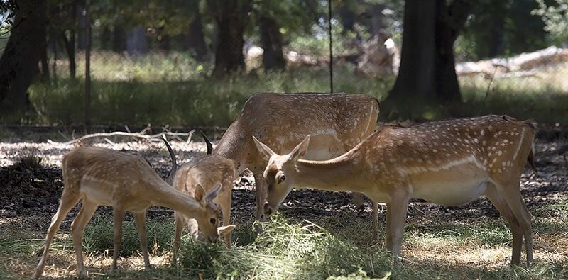 چند رأس گوزن زرد ایرانی بالغ و گوساله در پناهگاه حیات وحش دشت ناز