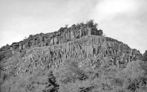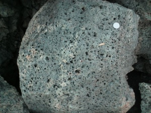 فراوانترین سنگ آذرین آتشفشانی[۱] در منظومۀ شمسی[۲]. بخش عمدۀ سطح سیّارههای زمینی[۳] عُطارِد[۴]، زهره[۵]، زمین[۶] مریخ[۷]، و همچنین ماه از جنس بازالت است. بستر اقیانوسهای زمین درواقع یکسره از بازالت تشکیل شده است. بازالت سنگی مافیک[۸] و متشکّل از مقدار نسبتاً کمی سیلیس[۹]، در حدود ۵۰ درصد وزنی، است. رنگ بازالت معمولاً خاکستری تیره است، اما به رنگهای سبز، قهوهای یا سیاه هم یافت میشود. کانی[۱۰]های اصلی تشکیلدهندۀ آن عبارتاند از فلدسپات[۱۱] غنی از کلسیم[۱۲]، و پیروکسن[۱۳] غنی از کلسیم و منیزیوم[۱۴]. زمینۀ بازالت ممکن است شیشهای یا دارای ساختار بلوری ریزدانهای باشد که گاه بلور[۱۵]های درشت نیز در میان آنها دیده میشود. گدازۀ[۱۶] بازالتی روان است و گاه پیش از انجماد مسافات طولانی جاری میشود. فلاتهای وسیع کلرادو[۱۷] و فلات دکن[۱۸] در جنوب غربی هند براثرِ فورانهای پیاپی بازالت تشکیل شدهاند. در بعضی از نقاط، مانند فینگالز کِیو[۱۹] در جزایر هبریدیز داخلی[۲۰] اسکاتلند، و جاینتز کازوِی[۲۱] (گذر غول) در ایرلند شمالی، انقباض[۲۲] گدازۀ مذاب[۲۳] در حین انجماد[۲۴] ستونهای ششگوش ساخته است. در سطح زیرین مناطق دریایی در زمینهای پست و تیرۀ ماه لایهای از بازالت وجود دارد. بازالت این لایه، در مقایسه با بازالتهای زمینی، حاوی غلظت تیتانیوم[۲۵] و زیرکونیم[۲۶] بیشتری است و غلظت عنصرهای فرّار مانند پتاسیم[۲۷] و سدیم[۲۸] در آن کمتر است. ویژگی بازالتهای مریخ نسبت کم آهن به منگنز[۲۹] آنها در مقایسه با بازالتهای زمینی است. این نتیجه حاصل بررسی شهابسنگهای مریخ (شرگوتیت، نوعی از شهابسنگهای سیاِنسی)، و تحلیل و آزمایشهای فضاپیماها روی خاک و سنگ سطح مریخ است.