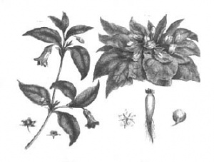 گیاهی پایا با نام علمی Atropa belladona از تیرۀ سیبزمینی، به ارتفاع یک تا ۱.۵ متر که در محلهای مرطوب و سایهدار میروید. ریشۀ بلادن ضخیم و گوشتی، برگهایش منفرد و با دُمبرگ کوتاه، گلهای آن درشت و جام گل به رنگ قهوهای چرک یا مایل به بنفش، و میوۀ آن سِتهای به بزرگی گیلاس و به رنگ قرمز است. برخی آلکالوئیدهای مهم از قبیل آتروپین و هیوسیامین در آن یافت میشود و به همین سبب همۀ قسمتهای این گیاه دارای خواص درمانی فراوان و مهم است، ازجمله آرامکننده، ضد تشنج، و بازکنندۀ مردمک چشم. از این گیاه همچنین برای درمان بیماریهایی چون آسم، صرع، دفع غیر ارادی ادرار، سرگیجه و جز آن استفاده میشود. چون رومیها، شیرۀ میوۀ بلادن را برای بازکردن مردمک چشم بهکار میبردند، نام «بلاـ دونا» یعنی بانوی زیبا به آن دادند. این گیاه در نواحی شمالی ایران میروید و به نام شابیزک نیز معروف است.