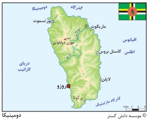 موقعیت. جمهوری مستقل دومینیکا در جزایر هند غربی، در حاشیۀ شرقی دریای کارائیب، میان جزایر گوادِلوپ[۱] و مارتینیک[۲] واقع است. این کشور ۷۵۰ کیلومتر مربع مساحت دارد و پایتخت آن شهر روزو[۳] است.