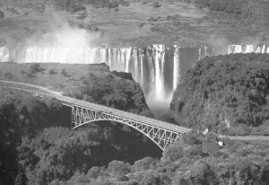 سیمای طبیعی. کشور زیمبابوه فلات گرانیتی نسبتاً مرتفعی با ارتفاع میانگین ۱,۳۵۰ متر است و رشته چکادهای مرکزی آن، با نامهای وِلد[۲] از جنوب غربی بهسوی شمال شرقی کشیده شدهاند. ارتفاع بلندترین نقطۀ کشور، کوه اینیانگانی[۳] که در مرز شرقی کشور و جنوب شرقی شهر هراره واقع است، به ۲,۵۹۳ متر میرسد. کوههای مزبور، که ارتفاعاتشان بهسوی شمال شرقی کاهش مییابد، حوضۀ رودخانههای مهم زامبزی[۴] در شمال و لیمپوپو[۵] در جنوب را ازهم جدا میکنند. رودخانه بزرگ زامبزی، که در درّهای ژرف جریان دارد، این کشور را از جمهوری زامبیا جدا میکند و آبشار زیبا و باشکوه ویکتوریا[۶]، با ارتفاع ۱۰۸ متر، و دریاچۀ سدّ مرزی کاریبا[۷] یا طویلترین دریاچۀ مصنوعی جهان را در بستر خود جا داده است. رود لیمپوپو در جنوب نیز مرز این سرزمین با کشور افریقای جنوبی است. زیمبابوه سرزمینی پرآب است و مهمترین رودخانههای آن عبارتاند از زامبزی، لیمپوپو، موئِنِزی[۸]، لاندی[۹]، ساوِی[۱۰] در جنوب و شانگانی[۱۱]، گوایی[۱۲]، و سانیاتی[۱۳] که در شمال جریان دارند و به رود زامبزی میریزند. چشمگیرترین عارضۀ طبیعی کشور زیمبابوه دیوال[۱۴] عظیمی است با درازای ۵۲ کیلومتر که تقریباً از شمال به جنوب کشیده شده و کانیهای ارزشمند و سنگهای گرانبهایی چون طلا و الماس و غیره در آن نهفته است. زیمبابوه به هشت استان تقسیم میشود و شهرهای مهم آن عبارتاند از هراره، بولاوایو[۱۵]، کوئهکوئه[۱۶]، ماشاوا[۱۷]، ماسوینگو[۱۸]، گوئرو[۱۹]، کادوما[۲۰]، و موتاره[۲۱]. این کشور در منطقهای مدارگانی[۲۲] جا دارد، ولی بهسبب ارتفاع نسبتاً زیاد، اقلیمی نسبتاً معتدل دارد. زمستانهای زیمبابوه معمولاً خشک و خُنَک است و بارندگیهای آن، که بیشتر در کوههای شرقی روی میدهد، مخصوص تابستانهاست. گرمترین ماههای این کشور پیش از فصل بارندگی آن آغاز میشود و از آبان تا اسفند به درازا میکشد. میانگین دمای هراره در دیماه ۲۰.۶ درجۀ سانتیگراد، در تیرماه ۱۳.۹ درجۀ سانتیگراد، و میانگین بارندگی سالانۀ آن ۸۲۸ میلیمتر است. بیشتر اراضی زیمبابوه پوشیده از علفزارهای ساوانایی است، درّۀ رودخانهها از درختان انجیر هندی و اقاقیا و ساج پوشیده شده و ارتفاعات را جنگلهای انبوه مستور کرده است. فیل، اسب آبی، شیر، ببر، کفتار، تمساح، بزکوهی، آهوی شاخدار، ایمپالا[۲۳]، زرافه، بوزینه، و کرگدن نیز حیات وحش آن را تشکیل میدهند. پارکهای ملی و حفاظت شدۀ متعددی، که بزرگترین آنها پارک ملی هوانگه[۲۴] واقع در غرب کشور است، به منظور حفاظت از طبیعت و حیات وحش در بخشهای مختلف زیمبابوه احداث شده است.