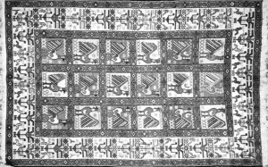 زیرانداز و دستبافتۀ داری دارای تار و پود و بدون پرز. در بافت آن از نخ تار و نخ پود استفاده میشود. نخهای رنگی پود را از زیر و روی رشتههای تار میگذرانند و با تغییر رنگهای نخ پود، نقشها در گلیم نمایان میشوند. در گلیمبافی کمتر از طراحی و نقشهکشی استفاده میشود، زیرا نقشآفرینی در این بافته بیشتر بهطور ذهنی صورت میگیرد. بافت گلیم، نوع بسیار ابتدایی بافت قالی است زیرا منحصراً از تنیدن تار و پود و درگیری ایندو بهوجود میآید. مواد اولیۀ گلیم، پشم، پنبه، کنف، و گاهی ابریشم است. نمونهای از گلیم ابریشمین بافت کاشان ایران، که در اواسط قرن ۱۱ هجری بافته شده است، در موزۀ وین بهنمایش درآمده است. نقشهای گلیم ایرانی از انواع ستاره، اژدها، گلوغنچه و انواع حیوانات بهویژه بز، خرچنگ، خروس، طاووس، عقاب و شیر تشکیل شده است. مشهورترین گلیمهای ایران عبارتاند از گلیم معروف به «ورنی» آذربایجان شرقی و اردبیل، گلیم معروف به «شیریکیپیچ» در استان کرمان، گلیم معروف به «رِندی» در استانهای فارس و خوزستان، گلیم معروف به «شورکی» و «سفرهکردی» در خراسان، گلیم معروف به «گل برجسته» در ایلام، گلیم معروف به «گَچمه» در کهگیلویه و بویراحمد، و گلیم معروف به «مسند» در نمینِ اردبیل. نامهای مذکور حاکی از تنوع بافت گلیم است. به آنچه شبیه گلیم بافته میشود، اعم از گستردنی و غیرگستردنی، «گلیمینه» گویند؛ ازجمله جَوال، سفرۀ خمیری، مُزْبَدْ (کیسهای که سرش تنگ میشود و قابل گرهزدن است)، چَنته، آینهدان، مَفرش (رختخوابپیچ)، نمکدان.