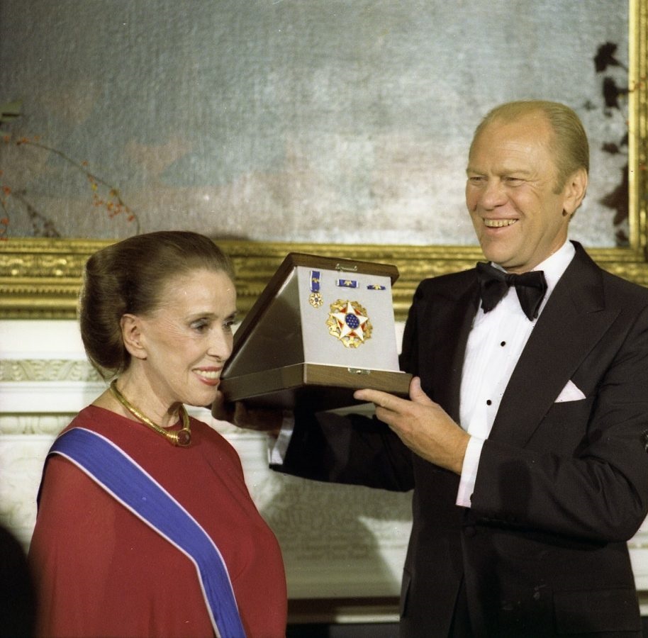 رئیس جمهور جرالد آر. فورد به مارتا گراهام مدال آزادی ریاست جمهوری، 1976 را اهدا می کند